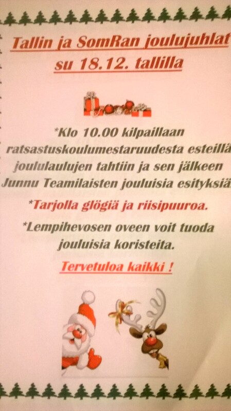 Joulujuhlat & ratsastuskoulumestaruus 18.12. klo 10.00! Tervetuloa kaikki mukaan!!
