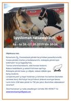 Ohjelmassa mm. Ratsastusta 2h : Ensimmäisenä päivänä harjoitellaan puomeilla/esteillä, toisena päivänä istuntaa ja koulukiemuroita, molempina päivinä myös leikkitunnit tai/ja heppanäyttely. Teoriaa esteratsastuksesta, sekä hevosen hoidosta. Mukava henkilökunta ja ammattitaitoinen opettaja. Molempina päivinä lounas ja välipala, makean nälkään apua löytyy kioskista. Leiripäivinä ponit ja hepat hoidetaan ja laitetaan itse kuntoon (kuitenkin valvonnan kera) Aloittelijat harjoittelevat yhdessä avustajan kanssa. Leirin hinta 120€ kaksi päivää tai 70€ yksi päivä. Muistathan säänmukaiset varusteet! Ilmoittautumiset ja ruoka-aineallergiat Caritalle 050-4914677 tai someronratsastajat@gmail.com